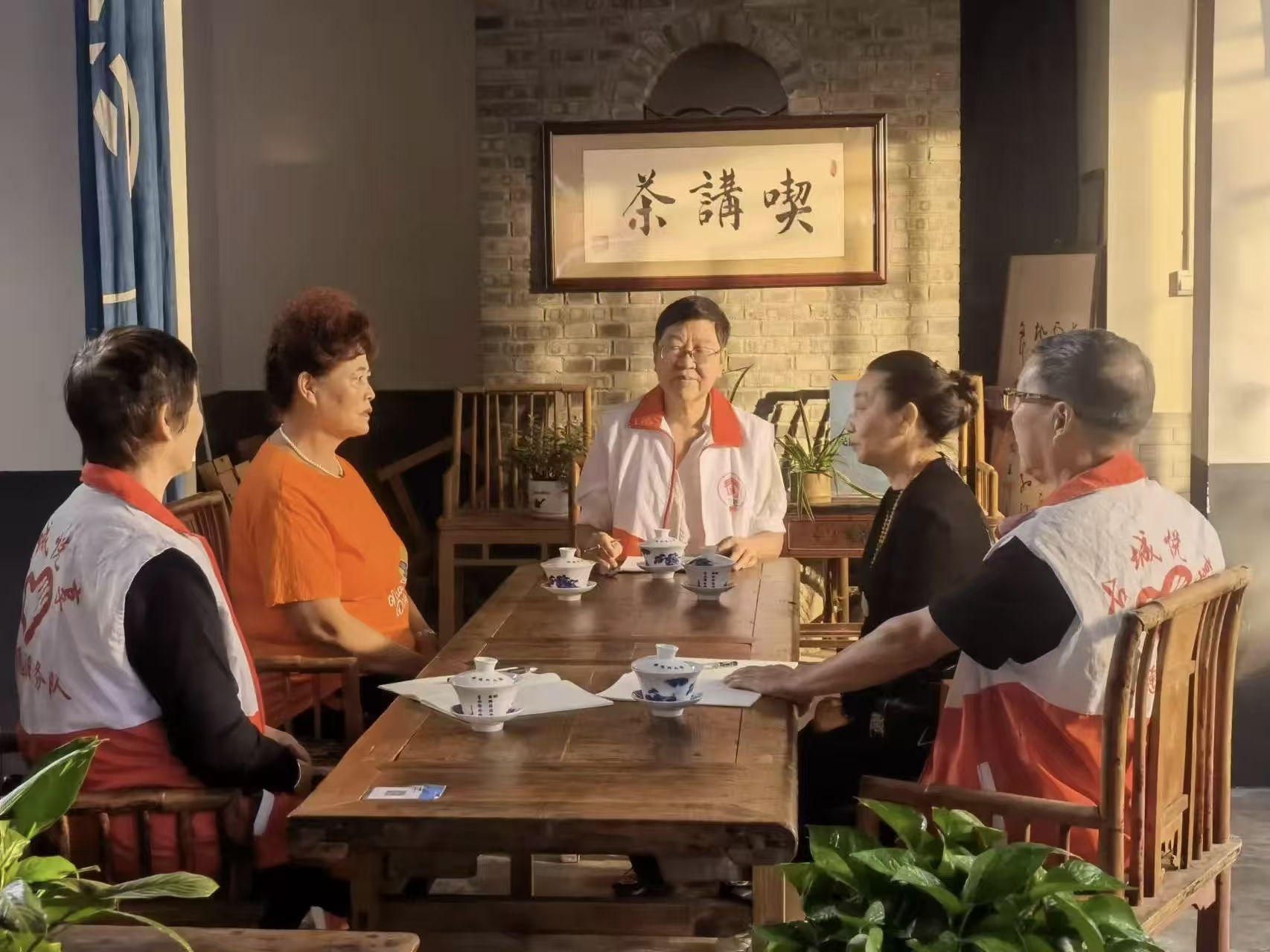 張兆坤(中)和“五老”們溝通社區治理難題。