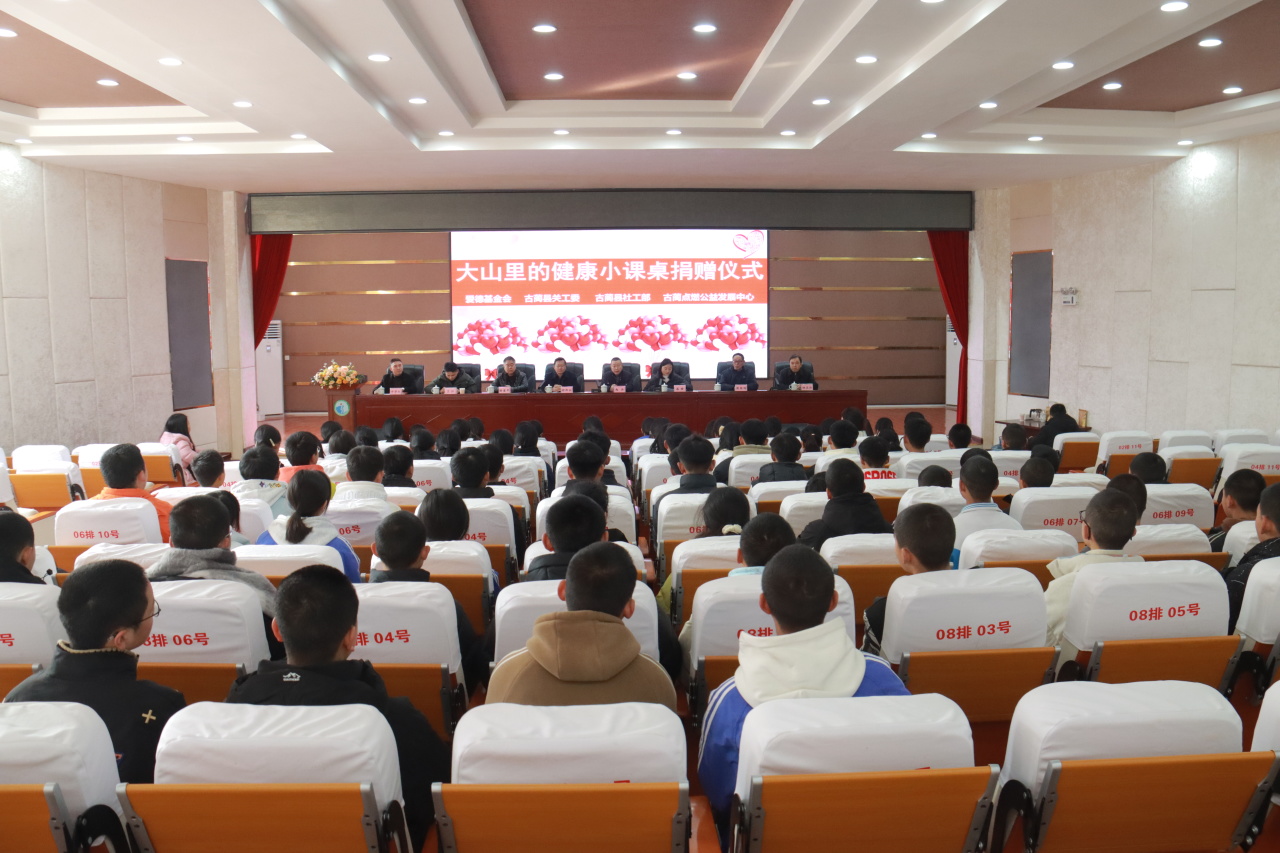 1月15日,“大山里的健康小課桌”公益項目捐贈活動在白沙中學舉行。瀘州市古藺縣關工委胡邦永、趙兵、徐富平,古藺點燃公益理事長王江,以及鎮關工委執行主任張枝國、白沙中學校長楊正紅、鎮中心校校長許學紅等出席,師生代表共同見證。鎮組宣統委員、關工委主任蔡績主持活動。